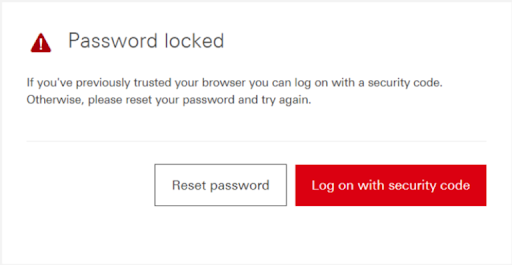 インターネットバンキング登録時に任意で設定した秘密の質問と、HSBCに登録している携帯電話に送られるSMSパスコードを入力することでロック解除できます。