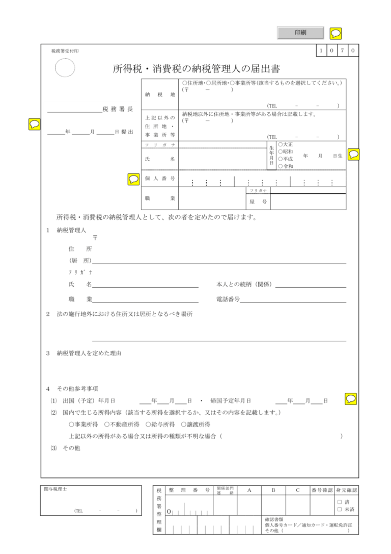 1. 出国前に納税管理人を指定した場合