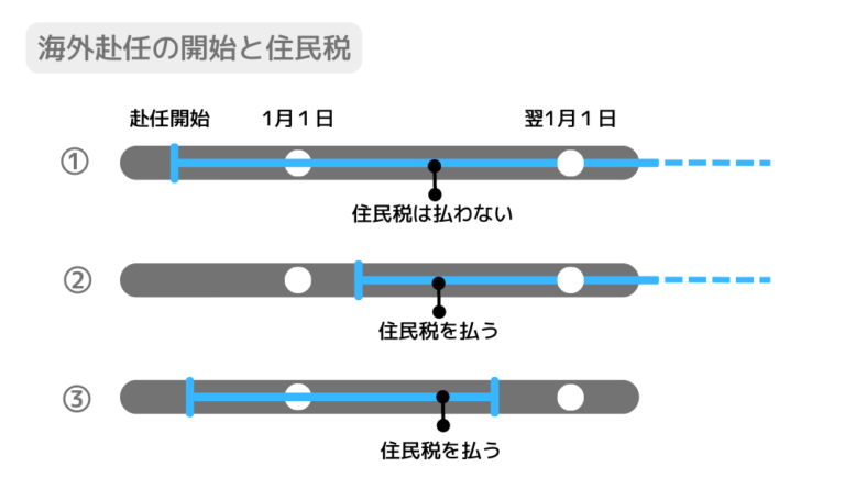 ①1月1日時点で日本に非居住かつ海外赴任1年以上→その年は住民税を払わない